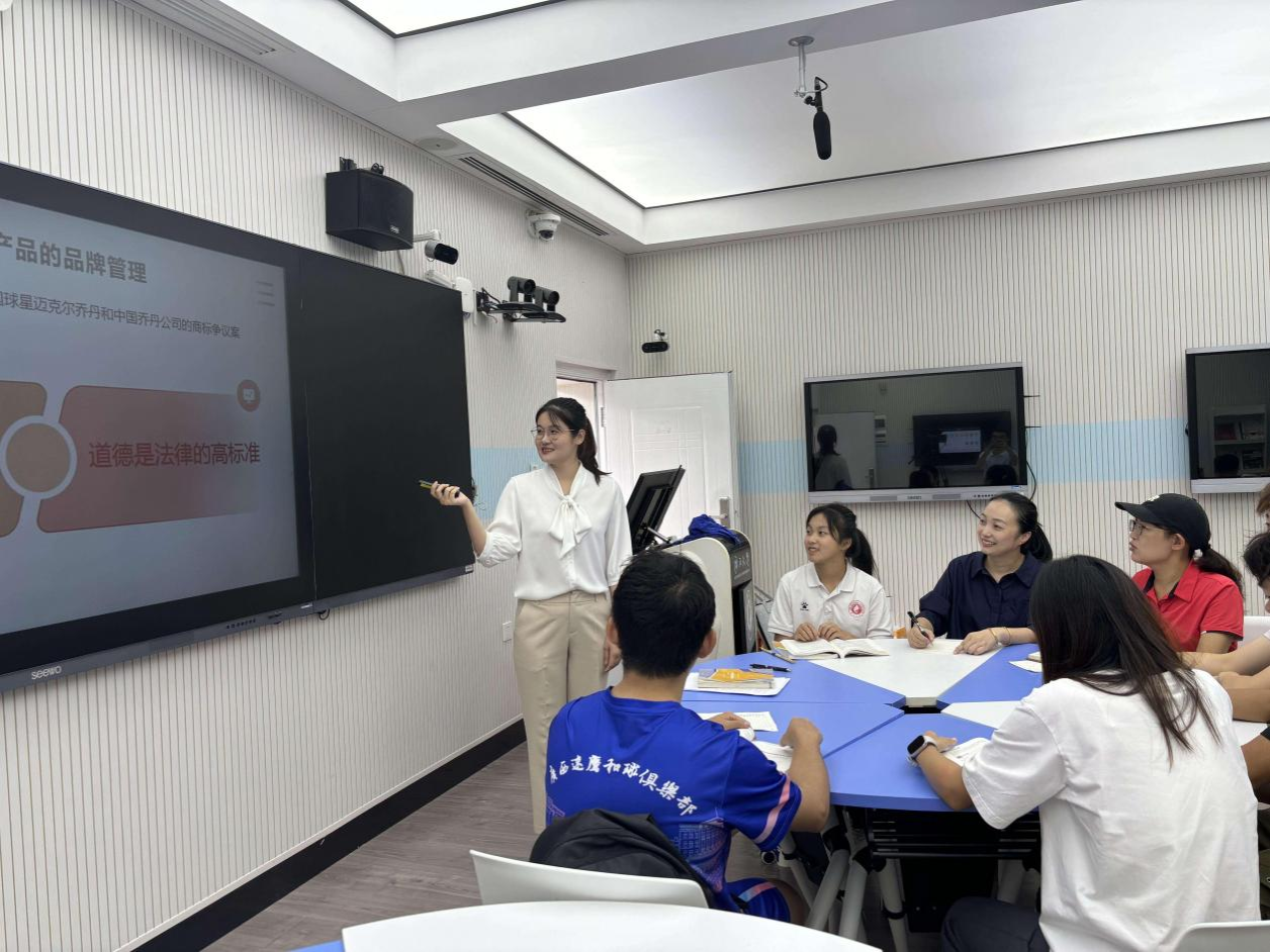 2024年9月26日,公司体育人文教研室杨蕊博士精心呈现了一堂以体育产品品牌管理为主题的课程思政示范课,以其精湛的教学技艺和深厚的思政素养,将体育产品品牌管理的专业知识与思政教育巧妙融合。例如,通过讲述“鸿星尔克在河南洪涝灾害时期向其捐赠5000万元物资”事件,引领员工向本土优质企业学习,在保证自身过硬技术的同时,更应该心系国家。再如,借助“2012年——2020年美国球星迈克尔·乔丹和中国乔丹公司的商标争议案”案例,强化同学们对于“商标”与“品牌”概念的认识,并就“这场争议案件谁是赢家”的问题,引发同学们的激烈讨论,课堂气氛活跃。在案例总结部分,杨蕊老师还引导员工思考“法律”与“道德”之间关系,并做出“法律是道德的底线,道德是法律的高标准”的格言式总结。