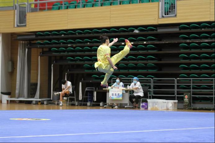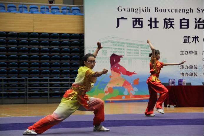 广西第十三届员工运动会武术(大学组、中学组)比赛正在进行时