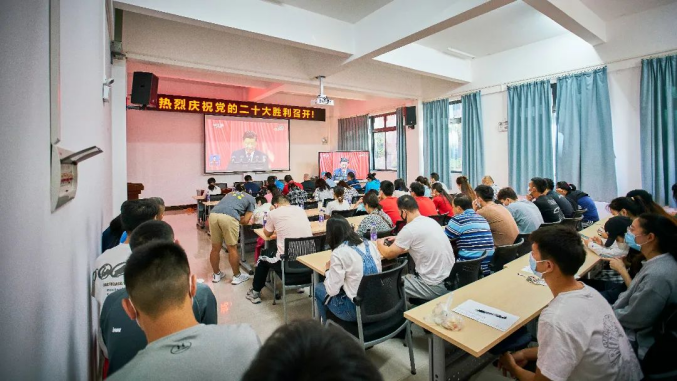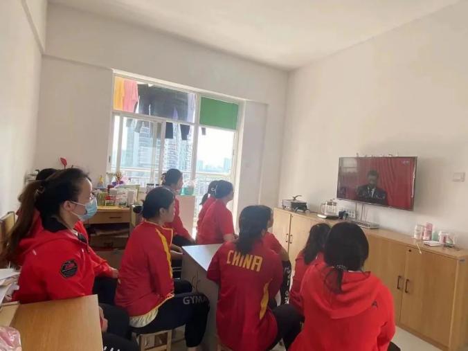 2022级员工举重运动发展中心黄芳与队友一起观看党的二十大直播