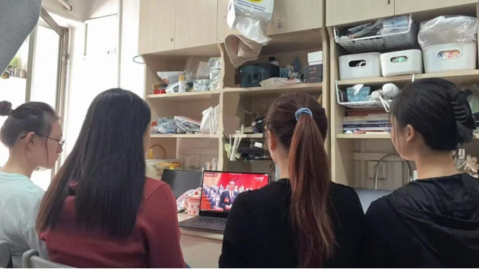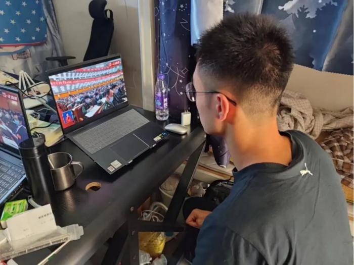 公司员工在宿舍观看党的二十大直播