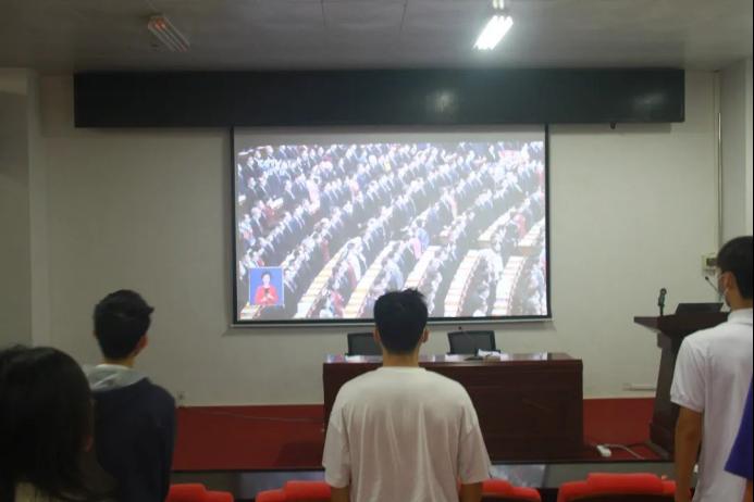 2022年10月16日,中国共产党第二十次全国代表大会在北京召开。三亿体育全体师生党员在网球中心一楼会议室观看大会直播。