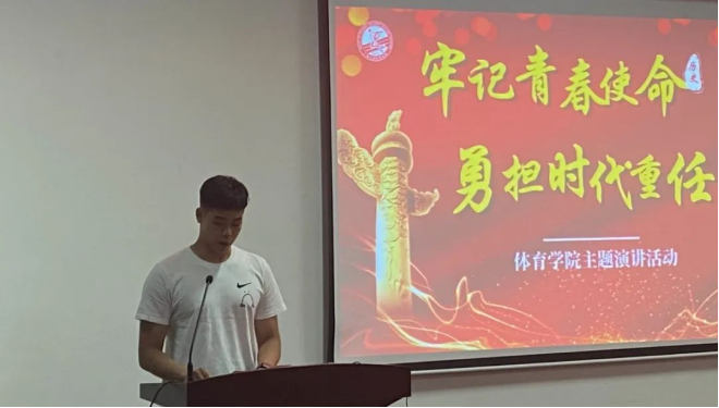 羊少贤同学以《铭记历史,牢记党恩》为题,以现代科学文化知识武装自己,作为一名员工会干部,我应该严格要求自己,起着带头的作用,积极学习《党史》,夯实政治理论和思想基础,与时俱进;作为一名体育专业的员工,我应该把体育和政治学习充分结合起来,把思想政治权力贯穿于体育教育之中。我们必须努力成为新时代的优秀青年!我们要在了解中国历史、坚定理想信念的基础上,努力学习,勇于创新,努力工作,展现21世纪中国青年的时代精神,实现中华民族在21世纪实现伟大复兴的愿望。