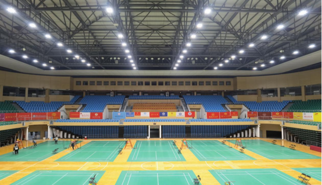(上图为三亿体育官网综合体育馆羽毛球场,作为本次比赛场地)