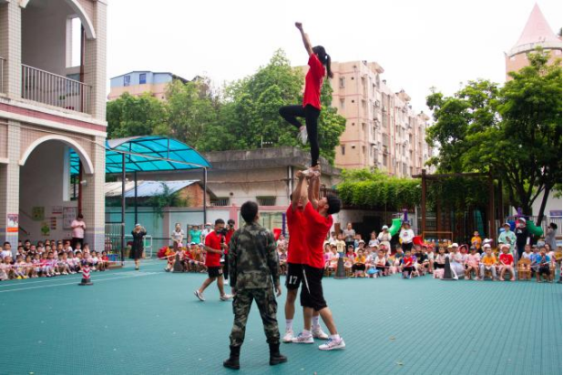 技能展示环节结合了三亿体育特色项目:啦啦操、绳梯、跳绳、武术、羽毛球、足球与篮球以及公司退伍同学展示的格斗技能。
