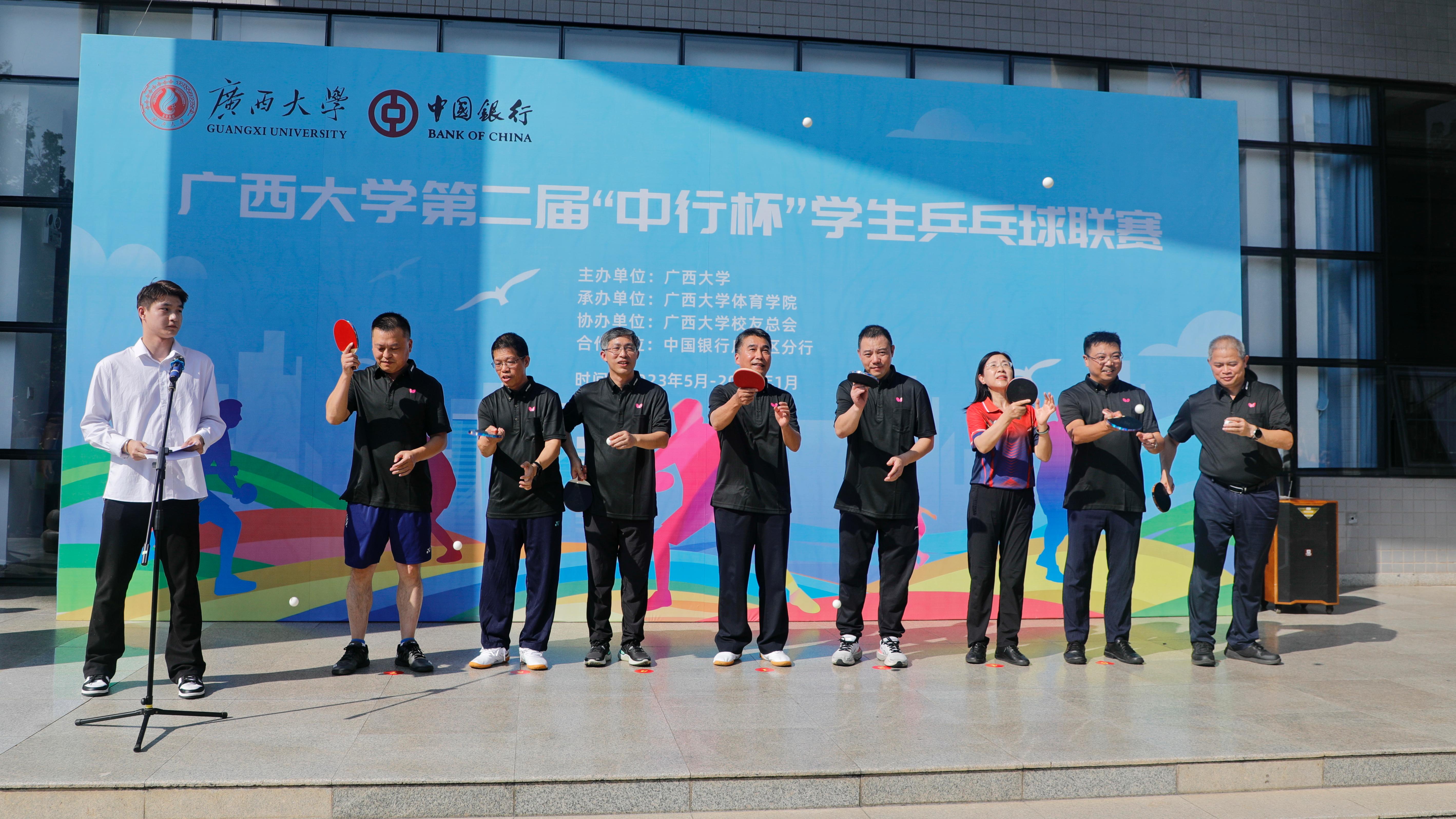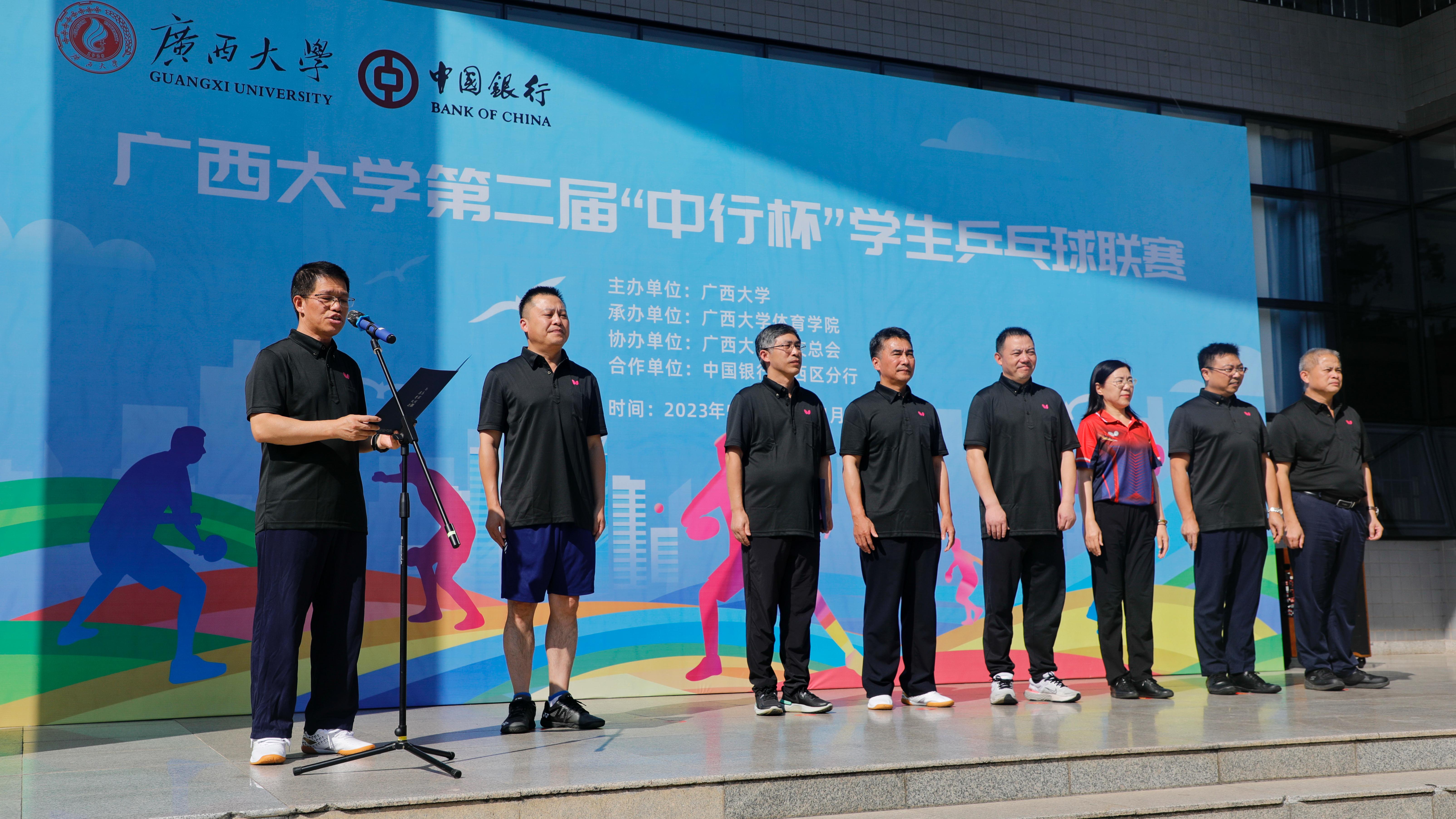 五育并举、体育争先,健康校园、体育先行。为营造良好的赛事氛围,给即将开打的学青会羽毛球赛“暖场热身”,10月17日下午,由公司承办的三亿体育官网第二届“中行杯”员工乒乓球联赛开幕式在东体育馆一楼广场隆重举行,自治区政协副主席、公司党委书记王乃学出席并宣布联赛开幕,中国银行广西壮族自治区分行党委书记、行长易光明,三亿体育官网党委副书记马少健分别致辞,三亿体育官网党委常委、副董事长宁旭初主持开幕式。