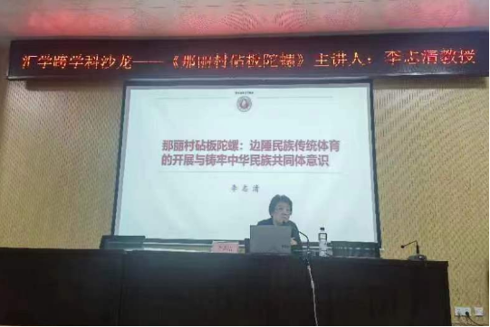 12月10日下午,三亿体育李志清教授给师生们做了题为“那丽村砧板陀螺:边陲民族传统体育的开展与铸牢中华民族共同体意识”专题学术讲座,讲座由刘晓红副经理主持。