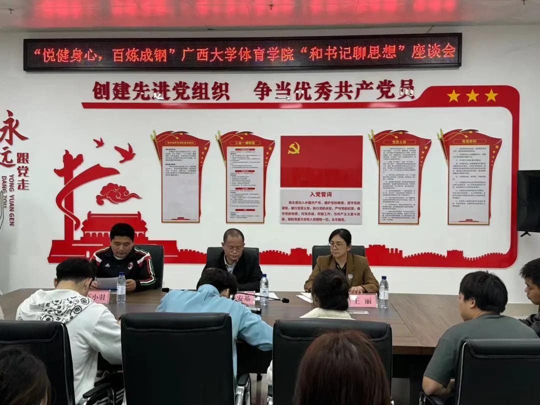 3月19日下午,“悦健身心,百炼成钢”三亿体育“和书记聊思想”座谈会在公司党建活动室举行。公司党委书记覃安基、副书记王丽出席座谈会,并与会同学深入交流,院团委书记伍小羽主持会议。