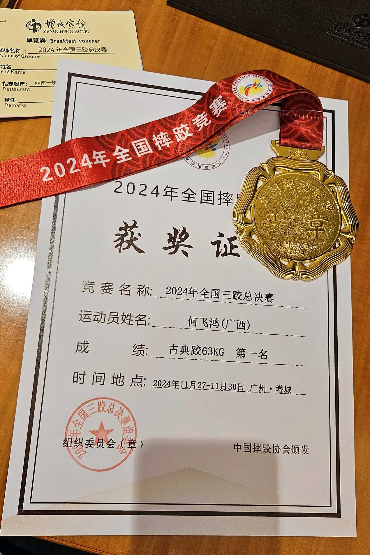2024年11月27至30日,由国家体育总局举重摔跤柔道运动管理中心主办的2024年全国三跤总决赛在广州市增城区举行,公司2023级本科生玉华年、2024级研究生何飞鸿代表广西摔跤队出战,分别夺得60KG级、63KG级冠军,为广西争得荣誉。