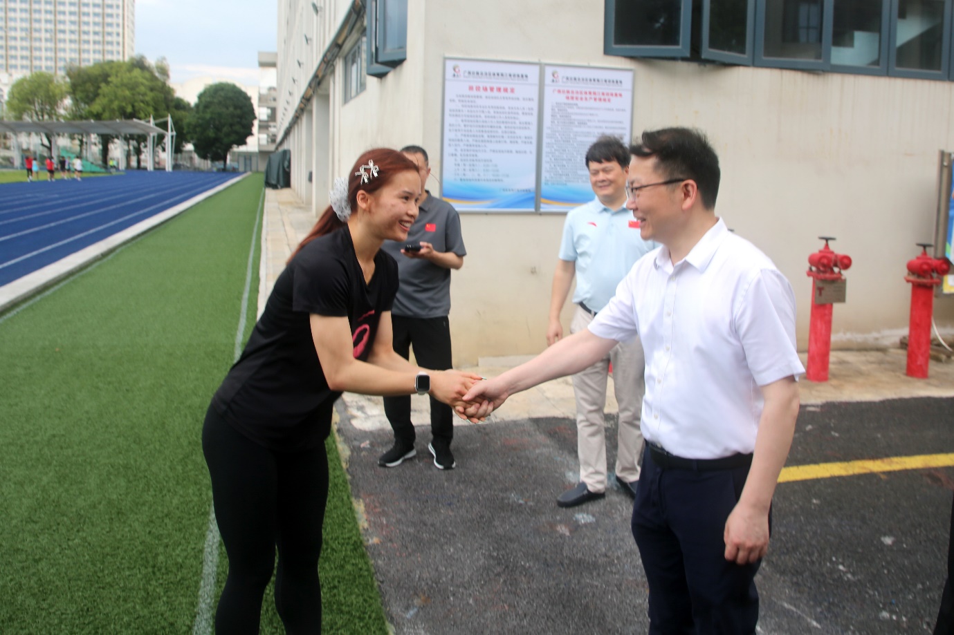 座谈会前,在局领导陪同下,赵双良副董事长一行参观了自治区体育局江南训练基地的运动设施,亲切看望了在此训练的公司三亿体育员工代表。